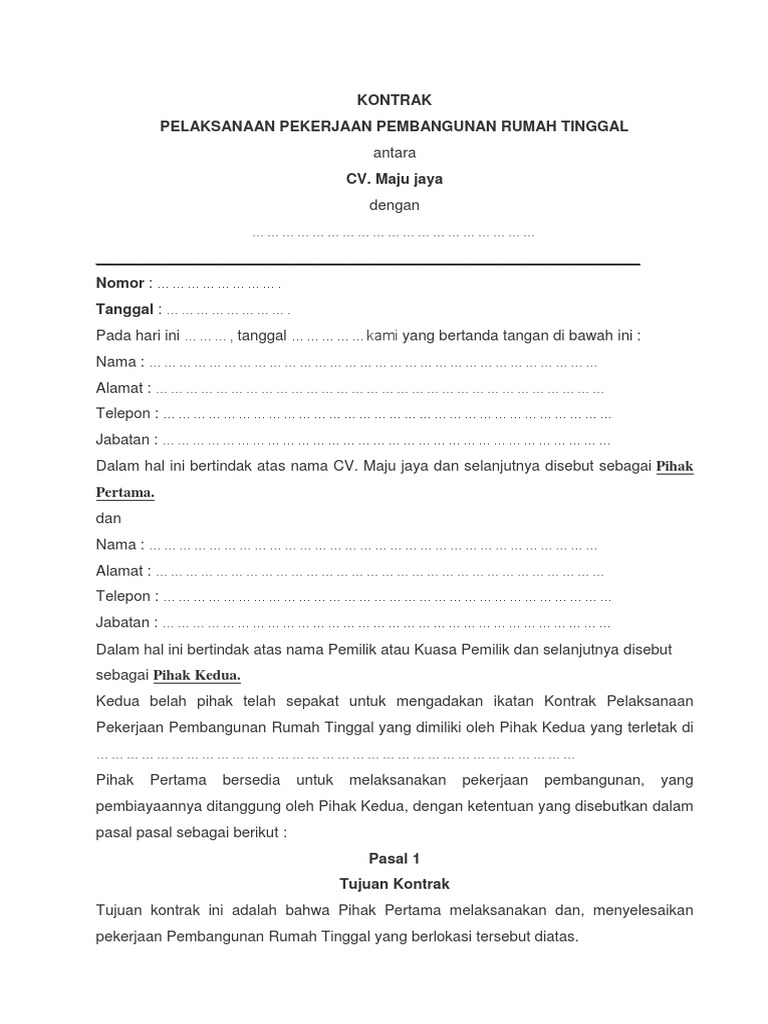 Related : Kontrak Kerja Renovasi Rumah Tinggal : Kontrak kerja renovasi rumah tinggal..